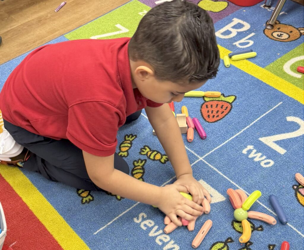 Language & Literacy: Recognizing letters, building early vocabulary, forming simple sentences, and beginning phonics awareness.
