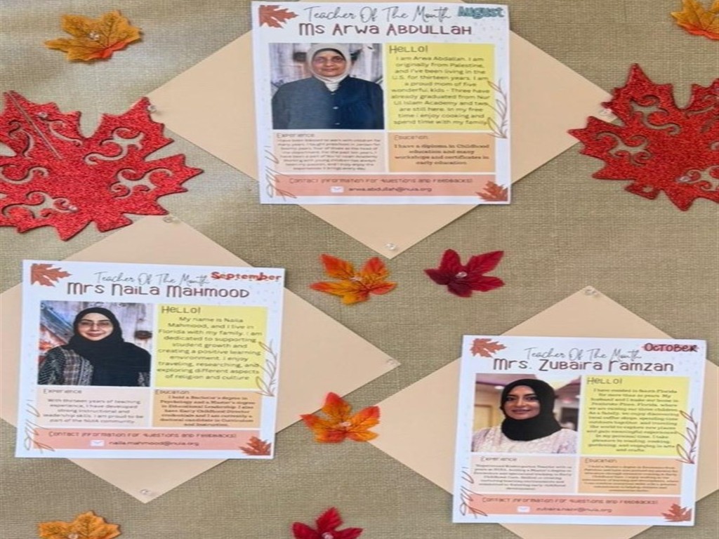 Dear Parents and Families, It is my pleasure to welcome you to our Preschool Program at Nur Ul Islam Academy . At our Islamic school, we are dedicated to nurturing the hearts, minds, and souls of our youngest learners in a loving and faith-centered environment. Our goal is to provide children with a strong foundation rooted in the values of Islam respect, kindness, honesty, and love for learning while helping them grow academically, socially, and spiritually. Through hands-on experiences, play-based learning, and daily Islamic teachings, we strive to instill a lifelong love of knowledge and a deep connection to Allah (SWT). Our team of caring and qualified teachers works closely with families to ensure each child feels safe, valued, and inspired every day. We believe that a child’s early years are the most formative, and together with parents, we build a community where every child can flourish with confidence and joy. We look forward to partnering with you on this wonderful journey of learning and faith. May Allah (SWT) bless our children and guide us all to success in this world and the Hereafter. Wa Salaam, Sr Maria Jammal Preschool Director